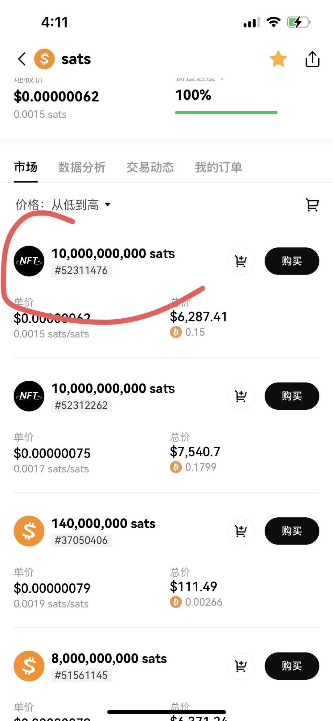 稍微细心点的用户会发现:这些虚假的sats,地板价格比正常sats便宜30%多,一般都是偏大单,而且图标也与正常的图标有所差异。
