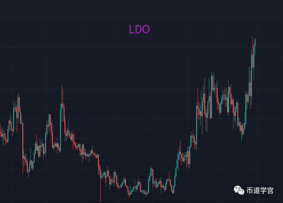 LDO的走势是有套路了的,当价格回到2.5以后就说明会有现在的3,冲3就会有很轻松迈过前面的高点几十个点,它和OP都在有趋近4的动作,一个已经完成后在修复走势,一个还在修复底下的走势。
