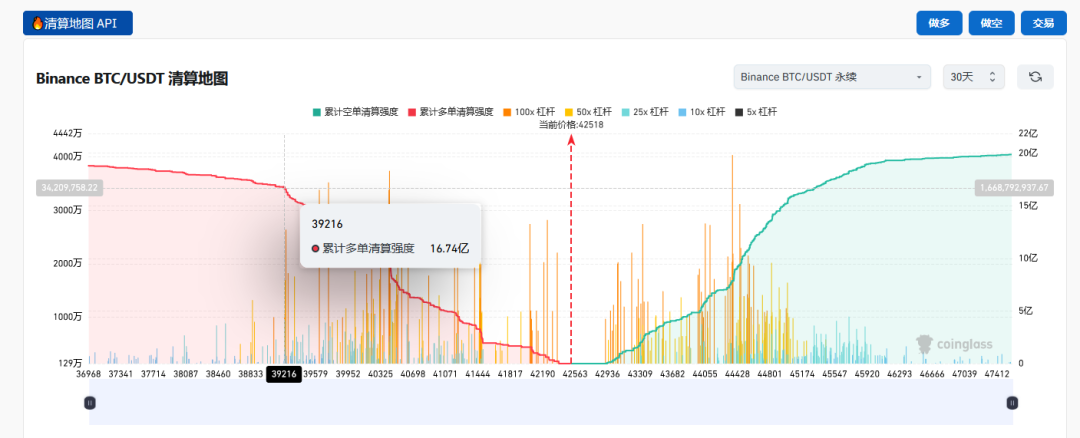 但大饼的清算地图显示,关键位置是3.9万和4.6万(到这两个位置会大量清算杠杆),所以个人认为未来十天可能大家会看到这两个位置的其中之一,大家应该做到心里有数。