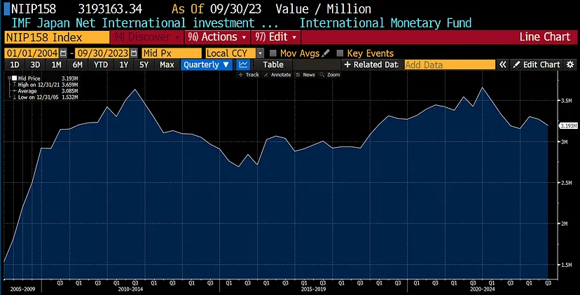 这是国际货币基金组织(IMF)的数据,估计日本的净国际投资头寸为正 3.3 万亿美元。