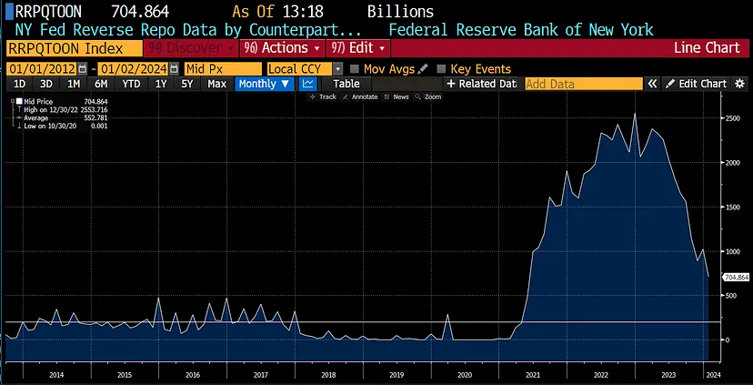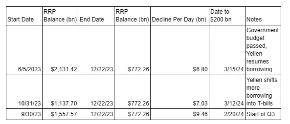 我们无法事先知道 RRP 的下降速度。因此,我将密切关注变化速率。如果它与我的预测有实质性偏差,我将相应调整我的交易策略。在 2023 年下半年,我加大了加密货币的投资,但我认为目前直到 4 月份都不适合增加风险或进行交易。
