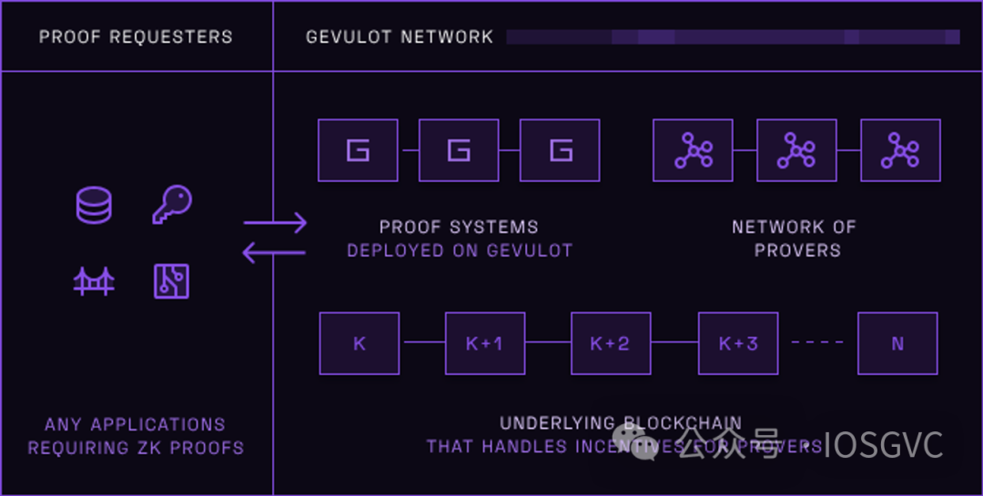 Gevulot 是一个支持不同语言和证明系统的通用计算平台。Gevulot 依托 Nanos 单内核 确保证明者可以轻松地在不同机器上运行。所有证明者需要被编译成单一的单内核镜像。