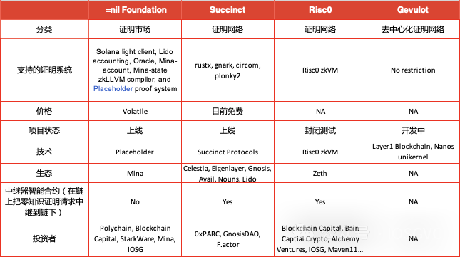 我们有 =nil 基金会和 Gevulot 在证明市场上工作。Succinct 和 Risc0 则在证明网络上。像 Ulvetanna 和 Cystic 这样的硬件公司也为提高 GPU 上的 ZK 证明性能和开发下一代专用 ZK 芯片做出了巨大贡献。