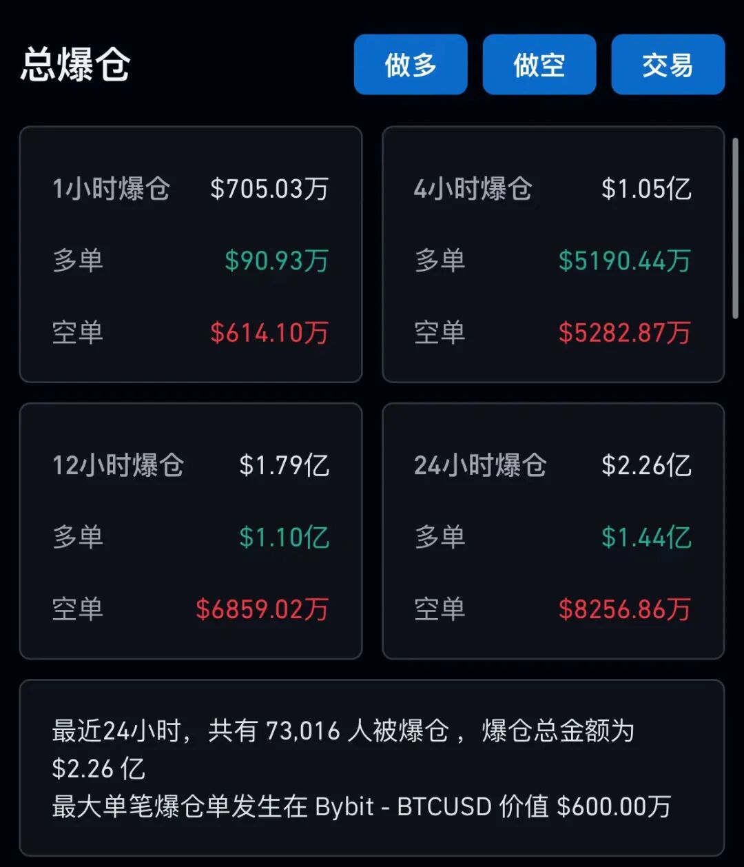 Coinglass数据显示,截至1月10日11时,24小时全网爆仓人数超过7万,爆仓总金额高达2.26亿美元(约合人民币16.2亿元)。其中多单爆仓1.44亿美元,空单爆仓超8000万美元。