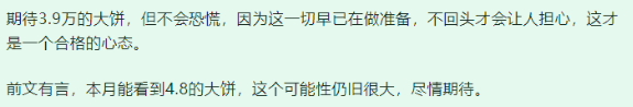投资是对未来的预判,预判也有对错,也分时间。几个月前我认为年底前会破4万,已经做到了。一周之前,我认为大饼短期不管怎么震荡,大概率都会冲到4.8的位置,这也已经做到了。