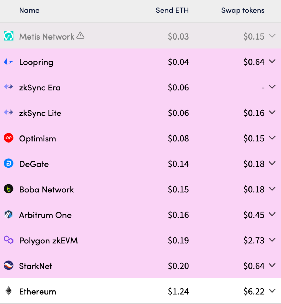 以太坊 L2 依旧高昂的 Gas 费用(来源:https://l2fees.info/)
