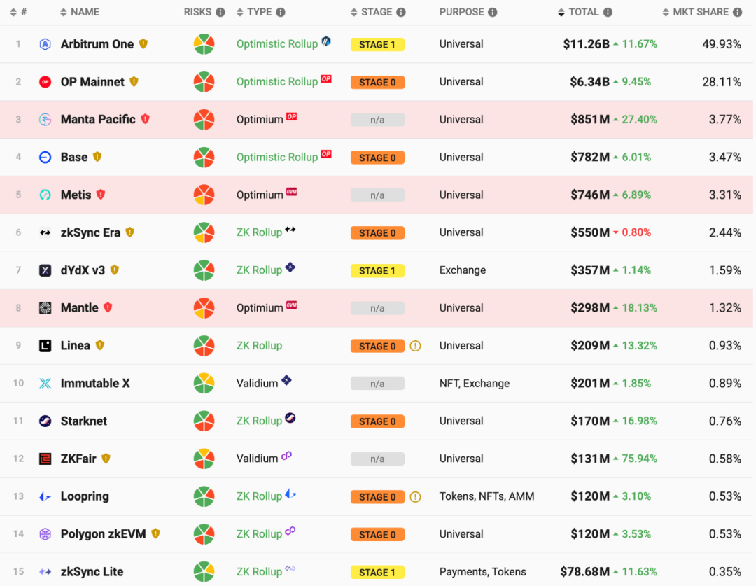 Dencun 升级对于所有基于以太坊的 L2 而言都是利好,但是在普适的利好之下,我们会重点观察哪些 L2 项目具有更加独特的竞争优势,能够吃到更多的 Dencun 升级带来的红利。