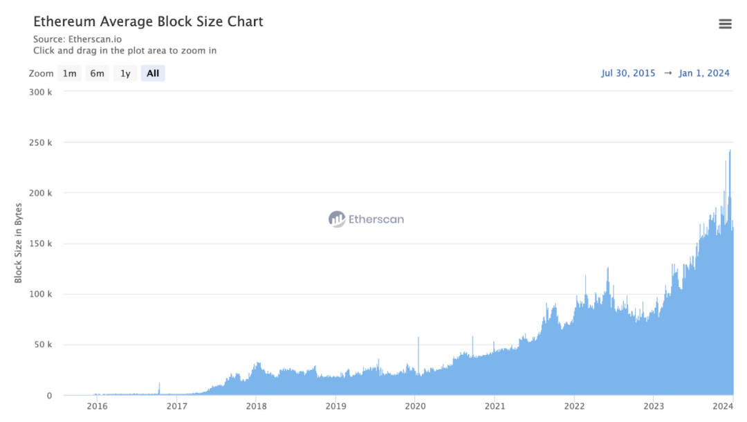 (来源:https://etherscan.io/chart/blocksize)