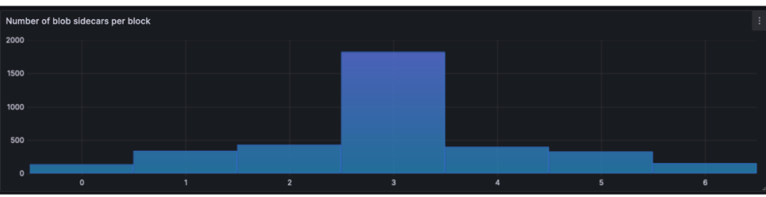 在测试期间内,大多数区块包含 3 个 blob,与目标 blobs 数保持一致。