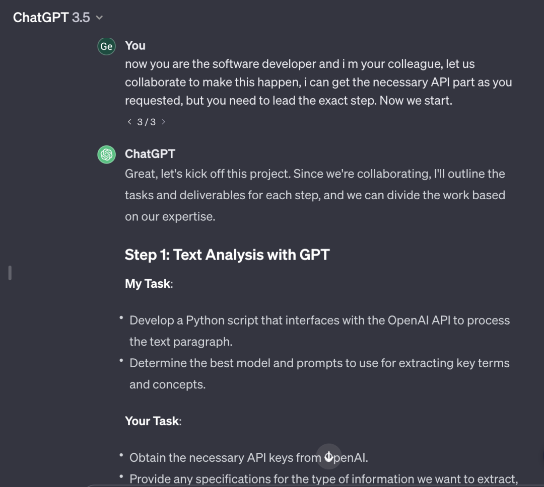 这期间的互动关系很有趣:人同样需要学习代码,但更重要的是了解各个组件的作用和他们之间的联系。比如设计一个xyz目标的系统,KG组织想法骨架,API联通数据关节,我们可以更多思考连接什么(以创造更有趣的东西或达到什么目标),GPT可以提供方案如何连接。我最近尝试【和GPT一起完成任务】的role play,其中他的角色是开发者提供代码方案,我是API key的搬运工(笑)和提供一些组装哪些API的思路: