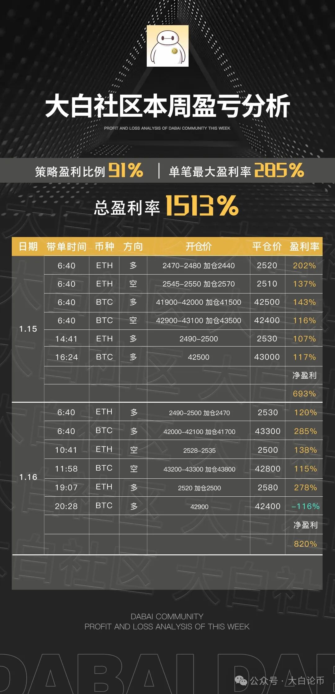 下方是大白社区本周实盘群单子,恭喜跟上的币友,如果你操作不顺,可以来试试水。