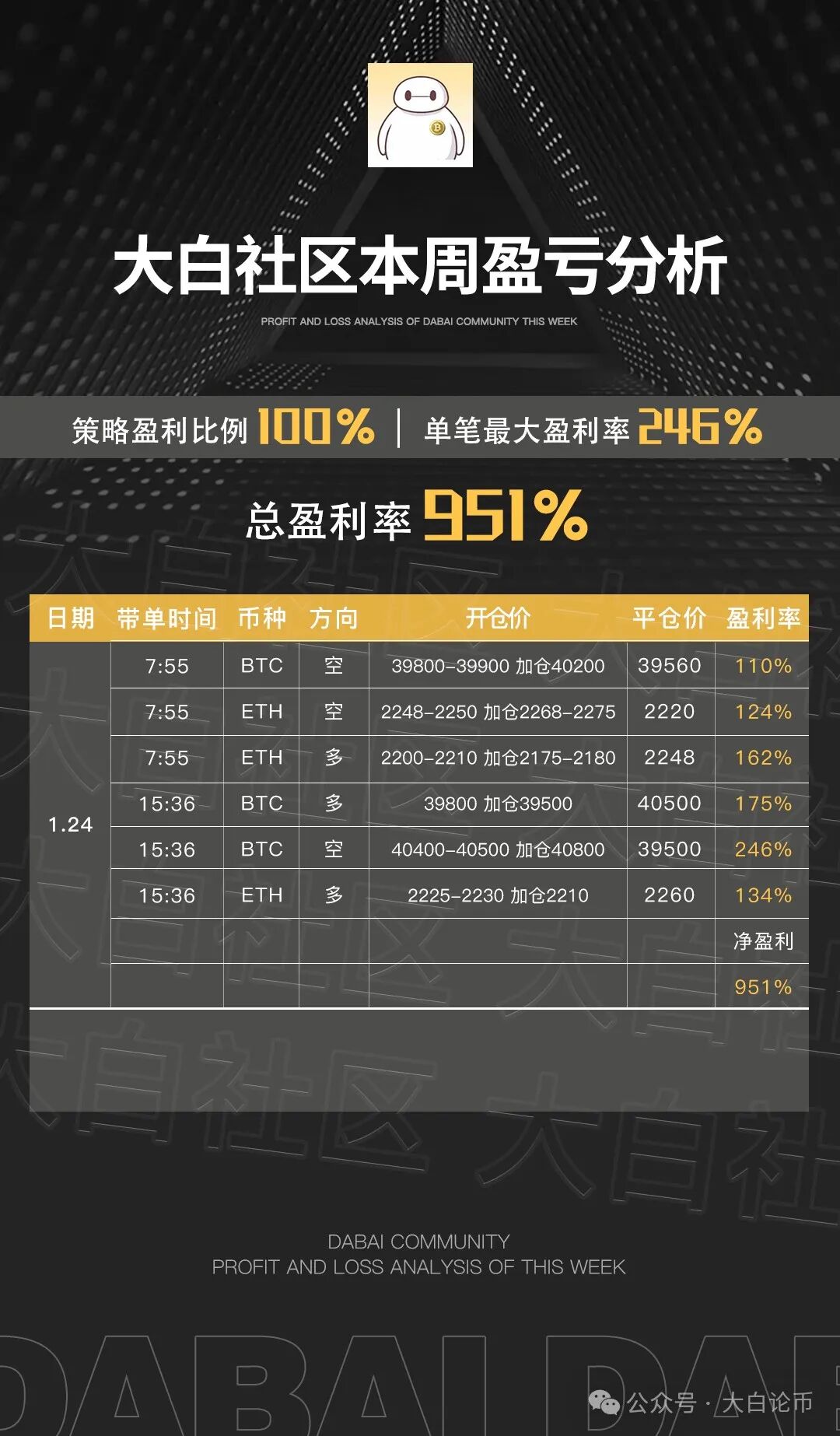 下方是大白社区本周实盘群单子,恭喜跟上的币友,如果你操作不顺,可以来试试水。
