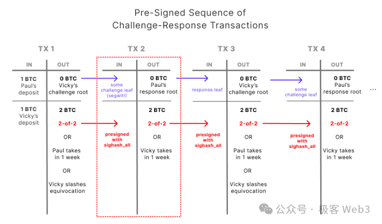 当争议发生时,挑战者在BTC链上声明,自己要挑战Proposer发布的哪个Root,然后要求Proposer揭示Root对应的某段数据。之后,Proposer出示默克尔证明,反复在链上披露MAST树的小部分数据片段,直到和挑战者共同定位到有争议的逻辑门电路。之后就可以执行Slash。