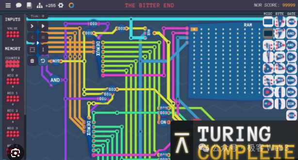 (此截图来自于一款 教学游戏:《图灵完备》 ,其中最核心的内容,就是用逻辑门电路尤其是与非门,搭建出完整的CPU处理器)