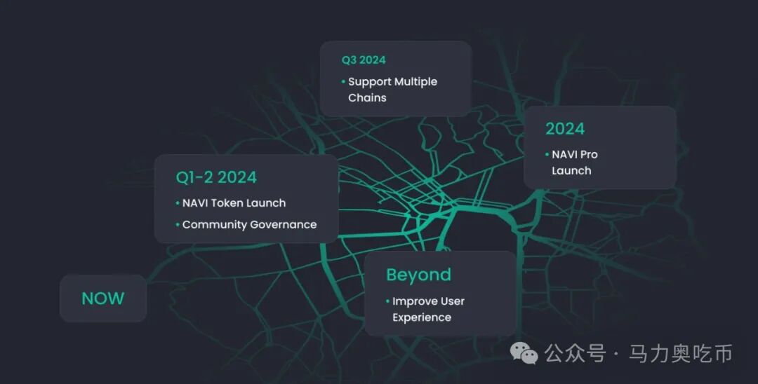 此外,NAVI 的工作重心主要聚焦在功能迭代和体验优化方面:一方面,团队将致力于实现将 NAVI 代币质押到流动性协议中,并与与 Sui 基金会 Deepbook 集成,利用深度流动性,为用户提供最佳的交易体验,其他更多功能将根据市场及社区需求不断调整优化,以期更好的服务用户,带来更加高效、安全、便捷、无缝的 DeFi 体验;另一方面,团队还将继续拓展服务边界,支持更多链,与更多项目集成,推出更多满足用户需求功能的同时,开展系列互动、教育相关主题,以激励引导用户深度参与项目。