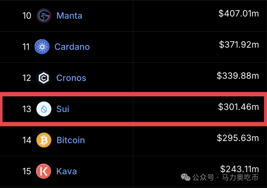 而对于 Sui,目前暂列新公链排行中的第13名,这同样是一个让社区对于 Sui 抱有极大想象空间的位置,原因无他,不管是从技术、资金还是社区声量,Sui 都是一个具备头部新公链项目所有特质的项目,且它最近势头迅猛,目前与上面几名的新公链相比差距也不是很大。
