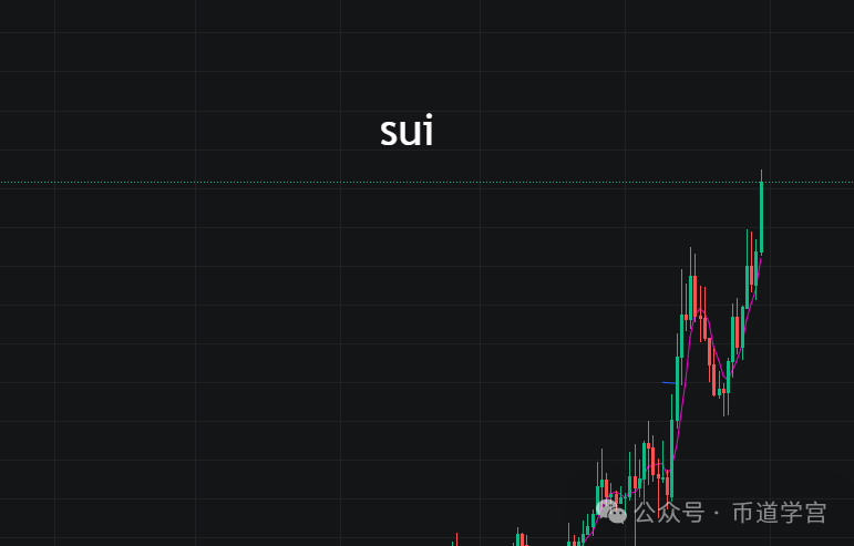 sui 是下面复杂,上面走势不复杂,就连向上突破也是采取V字形态,在大盘趋近于稳定的时候它的最小阻力线继续向上移动。行情走势如同水一样,它不会直来直往,只会迂回前进,这和迂直之术的道理是相通的。