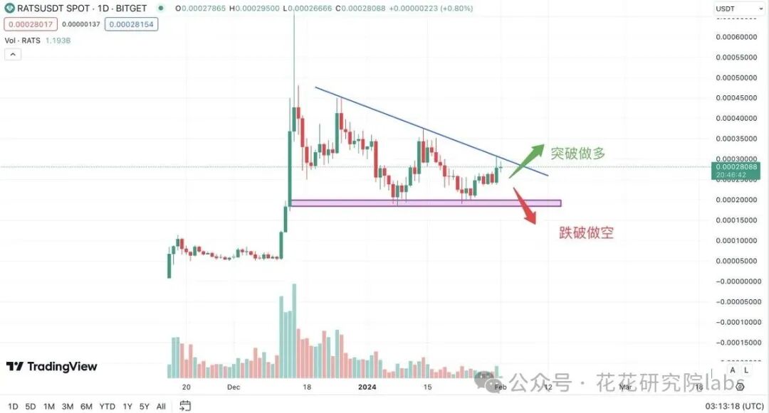 RATS这两天的走势非常强势,小道消息再传币安上线现货,消息无法确定真假,但从技术面来看,已经来到调整的末端,近期就会产生好的短线做空机会,跟着突破方向顺势做单,近期加强对老鼠的盯盘。