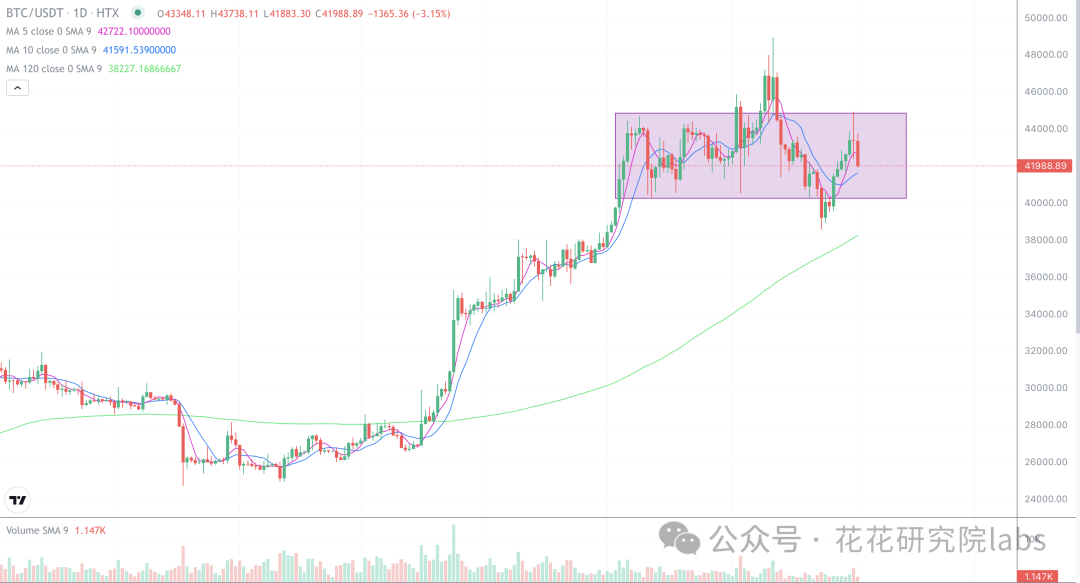 比特币短线反弹到压力位冲高回落,重新回到40000-45000的震荡区间,如果没有利好刺激的前提下,预计要进行一段时间的震荡调整了,这两天外面小道消息都在传币安即将上线web3钱包和rats现货,包括币安的web3推特账号也发了一个圆圈,很有可能近期就要上线了,所以铭文板块可以重视起来。