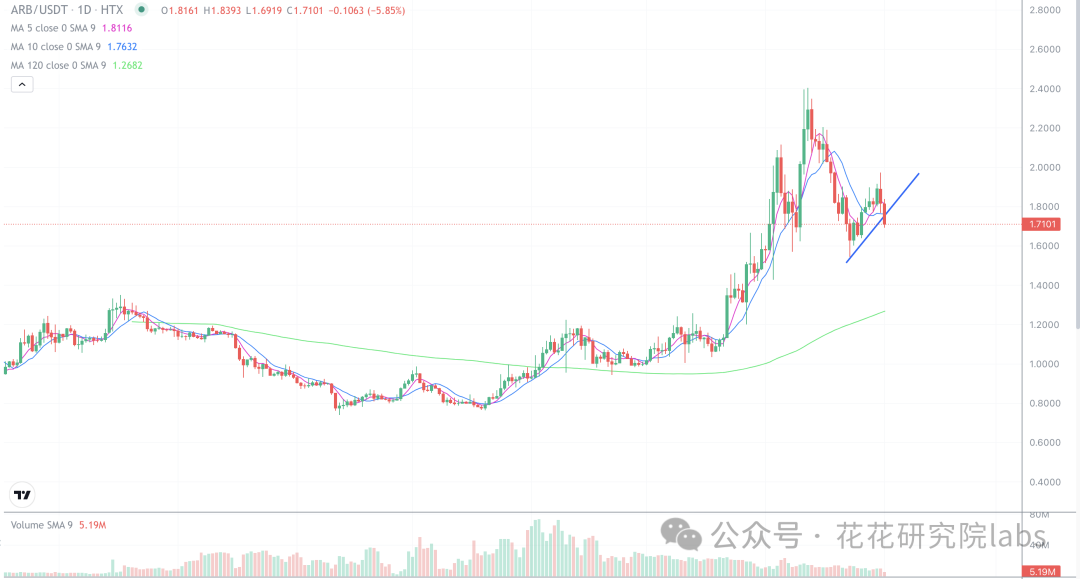 arb已经跌破局部看涨走势,短线有可能再次回调探底,短线建议观望,中长线的低位筹码拿住!