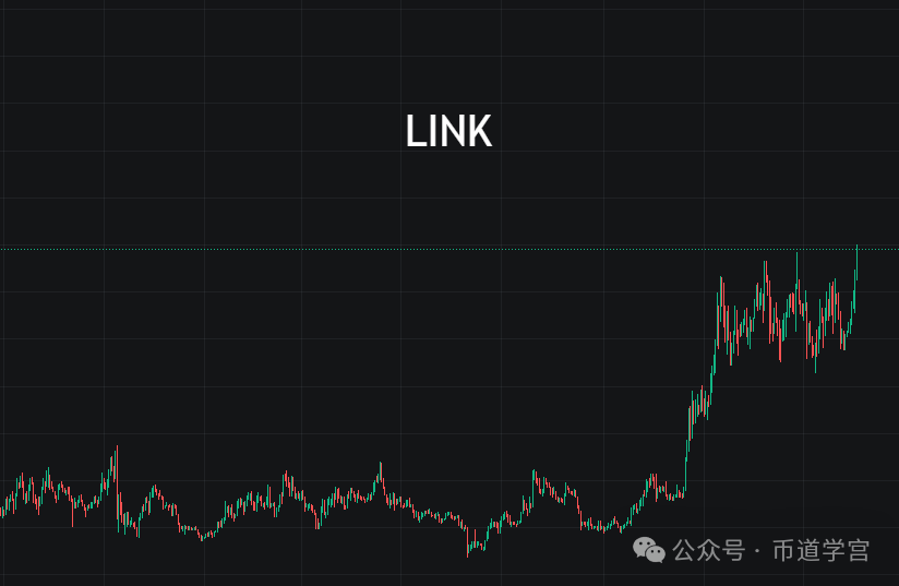 显然link的这一笔将成为真正的动作,过去的区间运动中到上挡板表现非常强势,然后又熄火;到下挡板表现弱势反而又反弹,说明那些都不是它的真正意图,现在才算它的真正意图。