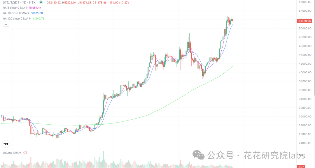 比特币目前还是处于50000-53000这个区间,不上也不下,很有可能主力会在这个区间完成换手洗盘,调整一段时间再继续拉升。这里位置基本面没有变,大趋势依旧看涨,短线的话50000依旧是小的分水岭,50000以上短线调整之后继续涨,跌破50000,回踩个四万七八再涨。兵来将挡,水来土掩,我们提前做好防备即可!