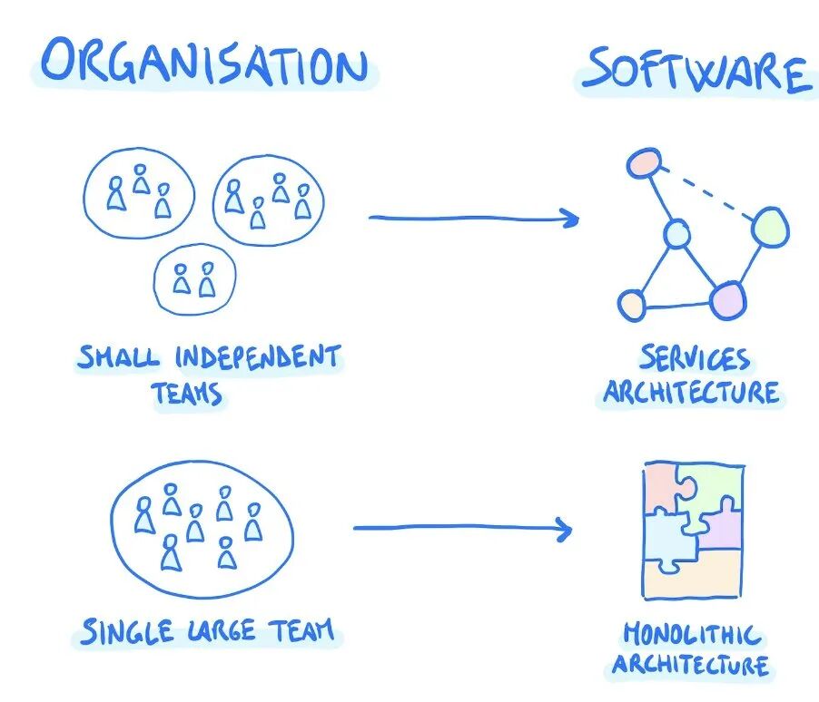 康威定律认为,组织设计的系统会反映出其自身的通信结构。如何使用此定律:使用类似于软件开发的方式设计你的组织。请注意,整体结构不能扩展!