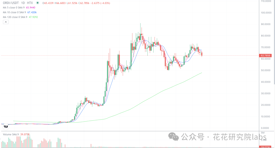 ordi符合短线判断,迎来小调整,这里很有可能是小4浪的调整,耐心等待调整结束,长线花哥依旧看好ordi!