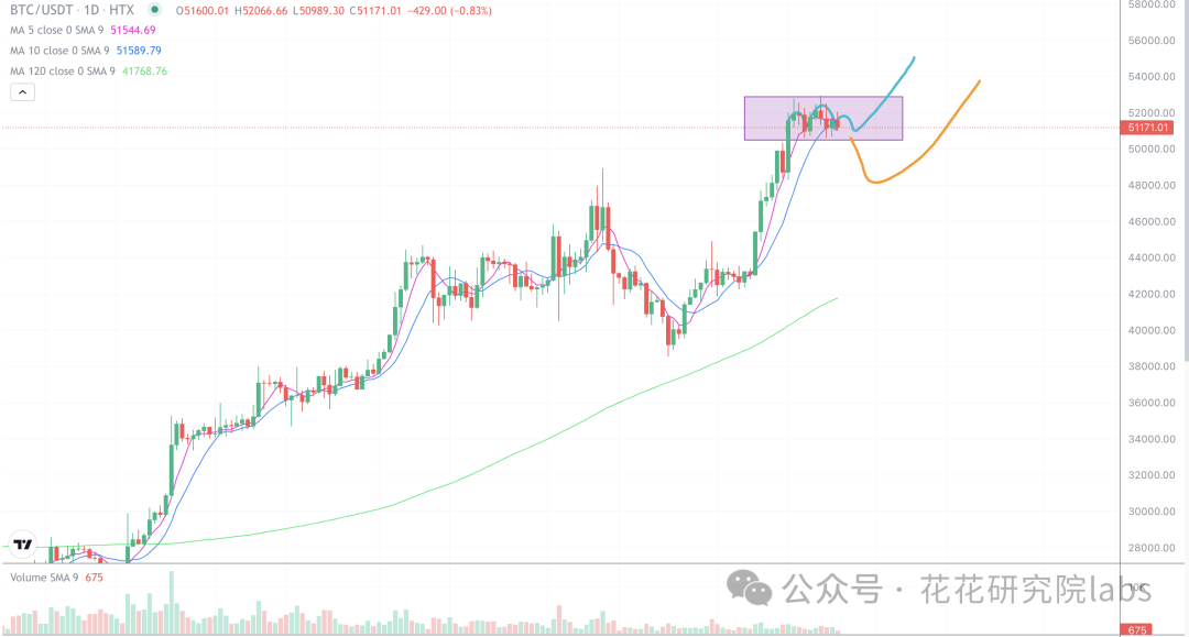 比特币最近的走势是墨迹的很,依旧是在50000-53000之间震荡调整,上下来回洗盘,搞的一些山寨直接泄了。比特币就关注50000的关键点位,调整不破50000,短线还会震荡向上,短线调整跌破50000,有可能回踩47000-48000然后再反弹上涨,花哥预计24年不会有特别大的跌幅,类似于312的行情就不要想了,24年就坚定执行低吸持有的策略,绝对会发财!