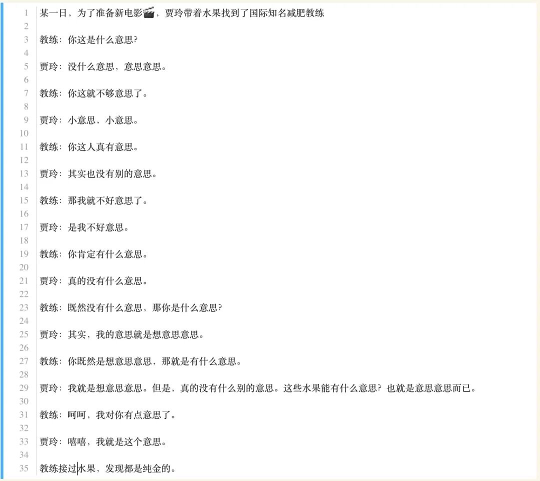 在这种场景下,贾玲和教练构成编码和解码的对手,来回传递的意思代表了双方的真正含义,但是不同于“我要减肥,给教练送礼”的直白,双方真正的意图被“意思”隐藏了起来。