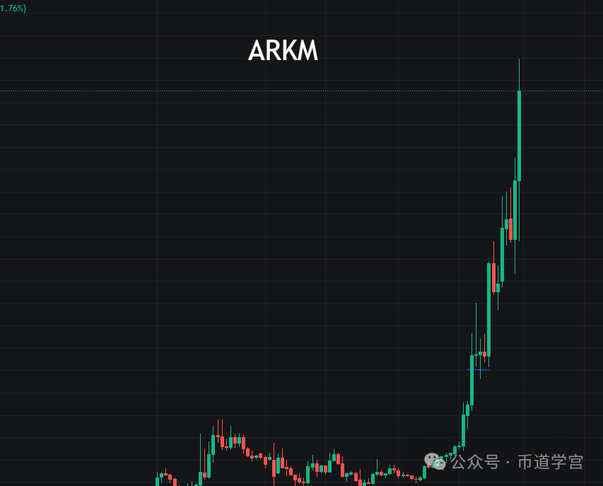 人工智能上arkm的走势才是老大,其他的币种反而都成为陪衬了,火箭式蹿升,这才是龙头中的龙头,就是震荡幅度有点大,心态不好的不要看。