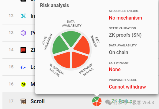 (L2BEAT网站针对Scroll,评估出的五大安全指标,State Validation就是指状态验证方案)
