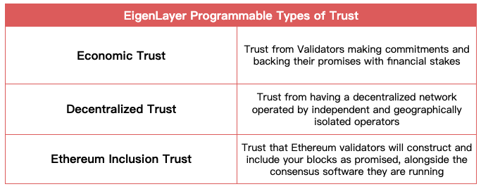 从这个角度来看,EigenLayer 是一个可编程的信任市场,提供“弹性”安全。