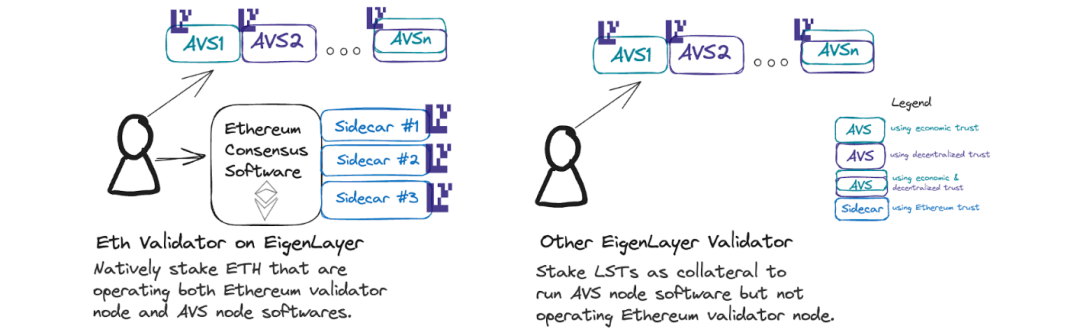 在 EigenLayer 上,不同的 AVS 可以定制它们的去中心化程度。例如,它们可以为 Operator 设置地理位置要求,或者只允许个人 Operator 提供节点服务,并相应地提供更多的激励来吸引这类Operator。