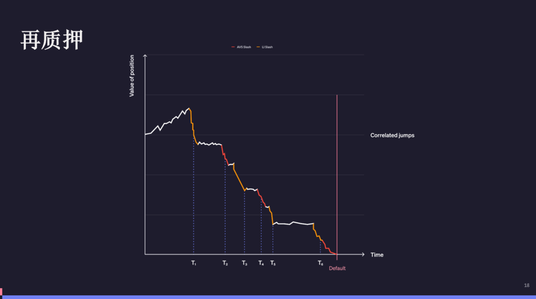 而再质押中你现在有这种相关的跳跃,这里的想法是,当你考虑再质押时,你不能像考虑借贷或永续期权那样,把它看作是在一个孤立的世界中。