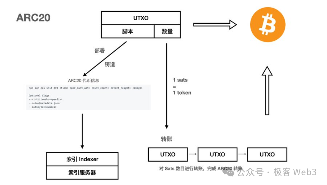 - 部署ARC-20时,资产发行方需要设置代币名称、总量、难度设置、创世区块等信息,并且配置相应的Taproot锁定脚本。