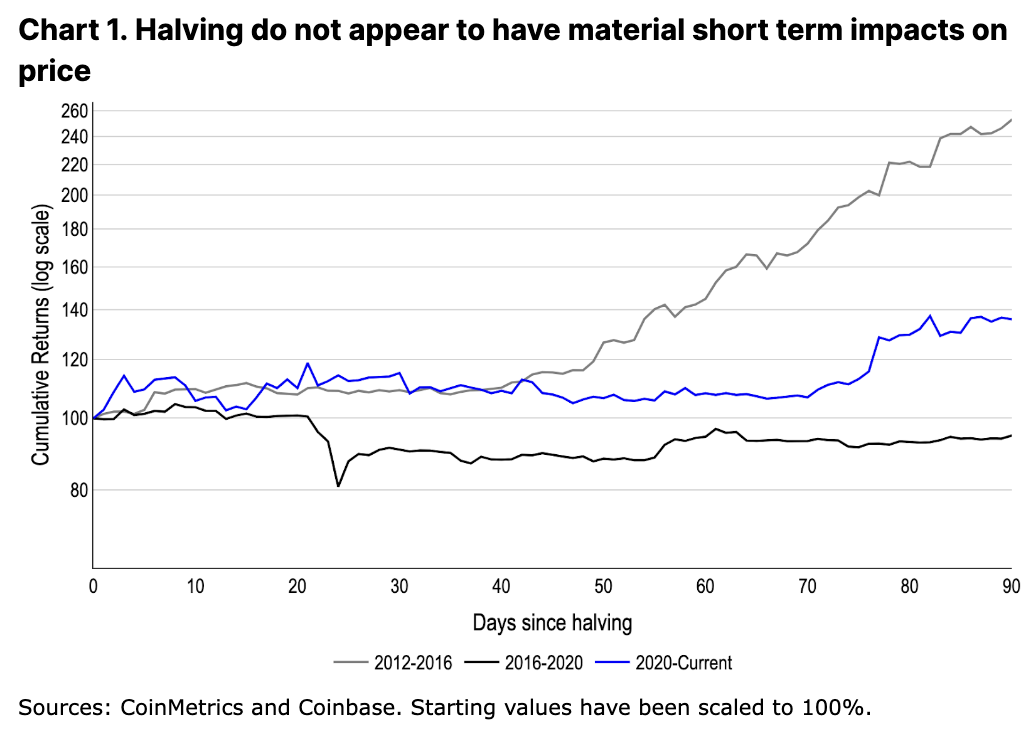 在其他条件相同的情况下,比特币减半本质上是建设性的事件,尽管我们认为宏观环境和切向突破的加密货币垂直行业历来在催化周期性牛市方面发挥了重要作用。虽然这一过程历来需要几个月的时间,但它会因周期而异——我们认为,随着主要 ETF 流入和风险投资减少,不断变化的市场结构可能会导致本周期的某些独特性。