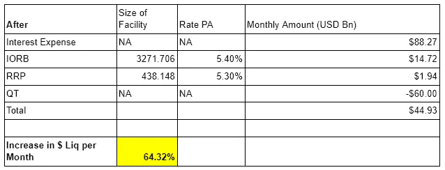 当普通投资者将量化宽松(QE)与印钞和通货膨胀等同起来时,这对精英阶层来说意味着麻烦。因此,他们需要改变术语和提供金融系统(毒瘤)其货币海洛因剂量的方法。根据美联储的量化紧缩(QT)计划减少资产缩减的速度听起来无害。但毋庸置疑——通过将 QT 的速度从每月 950 亿美元降至 600 亿美元,美联储实际上每月增加了 350 亿美元的美元流动性。当你结合准备金余额利息、逆回购协议(RRP)支付和美国国债利息支付时,QT 的减少增加了每月提供给全球资产市场的刺激金额。