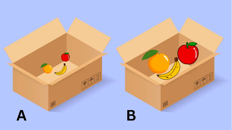 映射:我们在水果之间建立了联系,其中盒子A中的每个小水果都对应盒子B中的一个较大版本。因此,盒子A中的小苹果对应盒子B中的大苹果,依此类推。