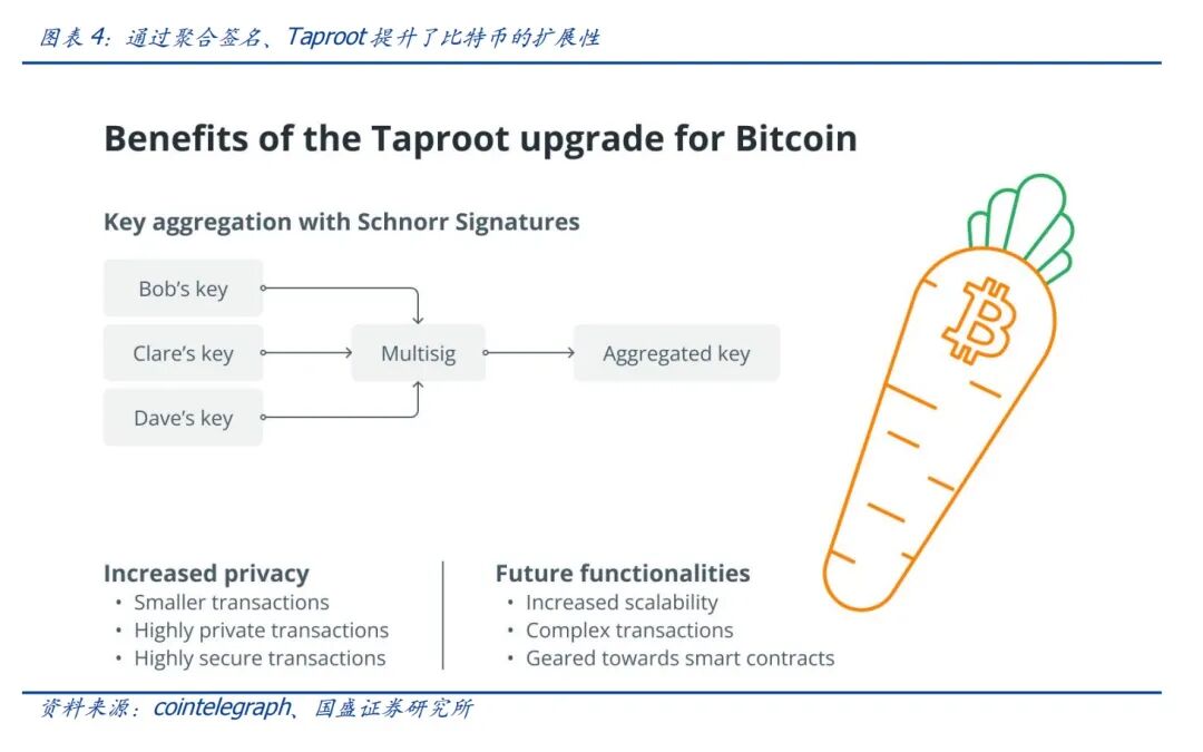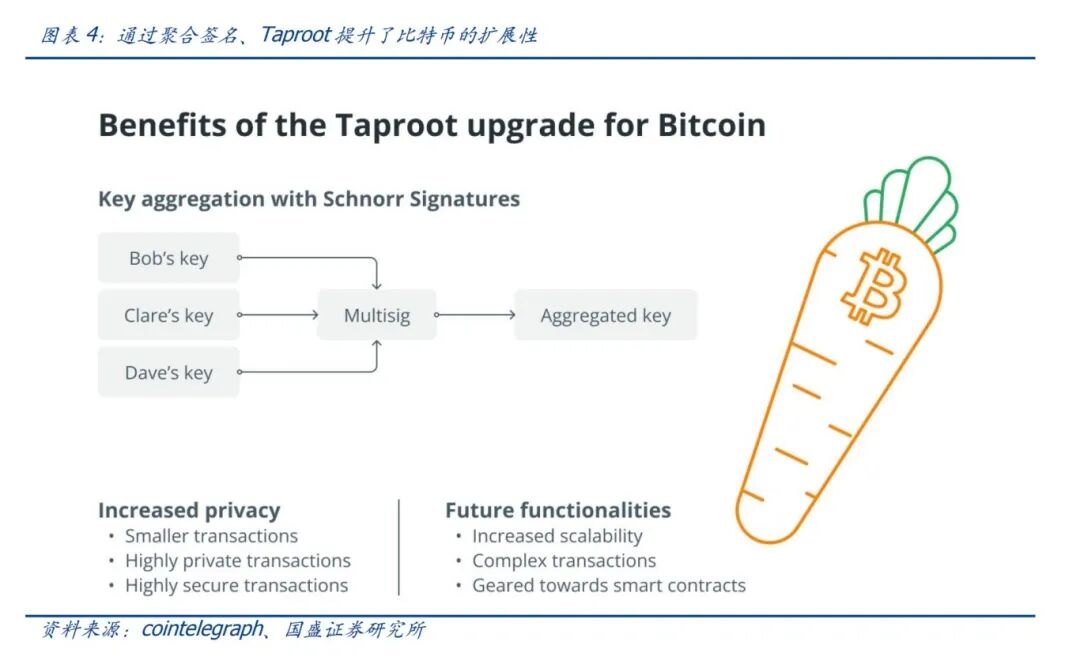 升级进一步提升了比特币生态的发展潜力。我们都知道,比特币Taproot升级是激活隔离见证 (SegWit)以来经历的最重要的升级。Taproot旨在进一步提高网络的隐私性和效率。Taproot 升级最显著的变化是允许将多个复杂的签名(例如多重签名钱包)一起聚合和验证,而不是单独进行验证。通过聚合签名,网络的性能更快、费用更低,且节省区块空间。Taproot通过增强用户的隐私性和灵活性,提供了一种执行比特币交易的新方式,将极大地提高比特币的可扩展性。