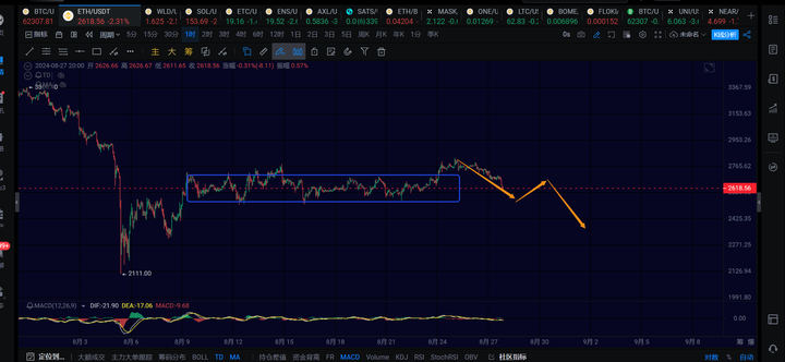 8.27日行情分析,大饼走一笔4h级别回调的概率在加大