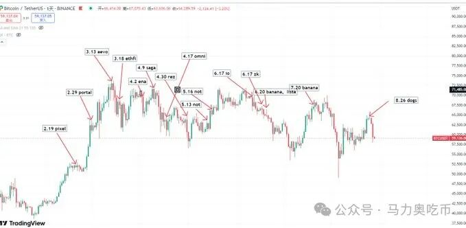 不知道哪位才子做了这张图,每次“天王级”项目TGE, $BTC 都要“先跌为敬”