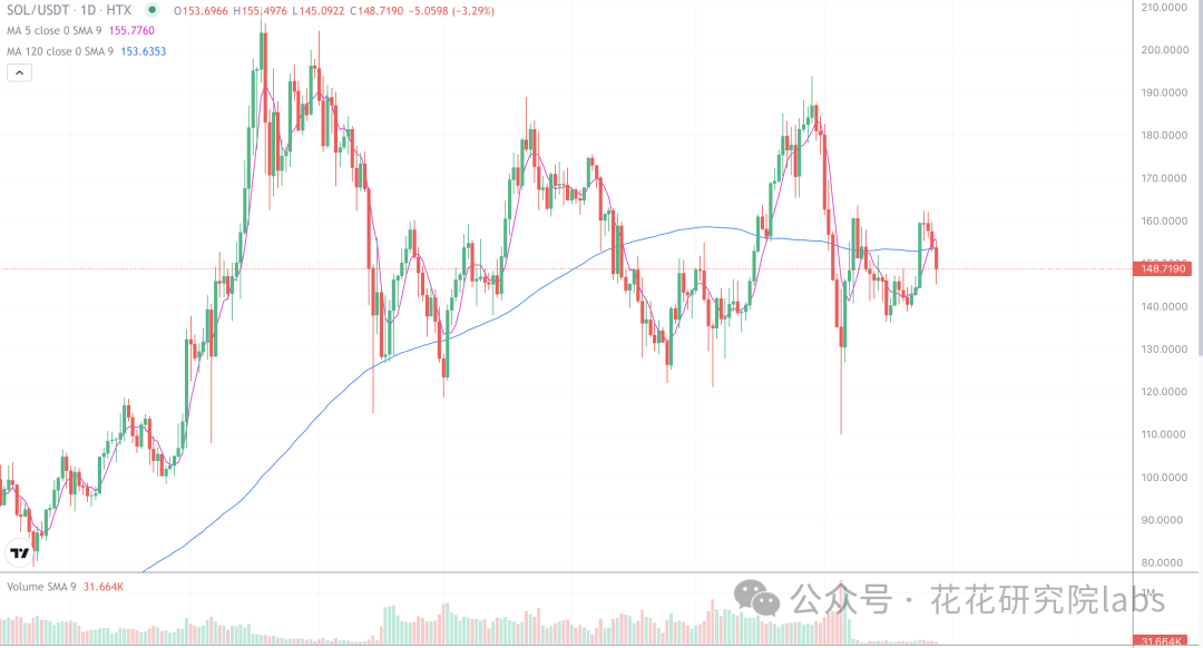 sol也是被比特币带崩了,短线应该也要调整一下了,反弹到150以上短线可以适当减仓,然后就观望就行了,一时半会预计也没有行情 。