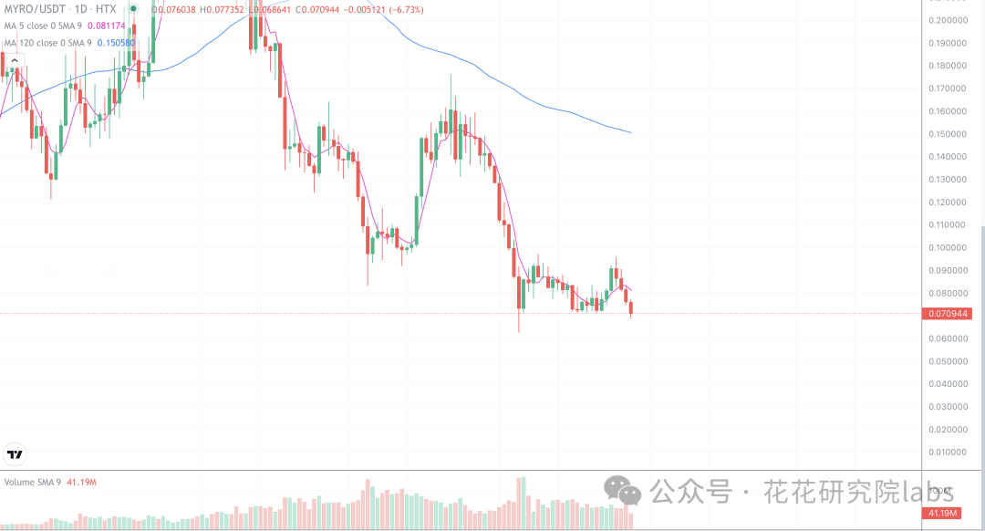 myro跌破了0.07,这里可能会有个反弹,反弹可以适当减仓,既然已经跌破箱体,那么反弹之后就还会有下探的风险。