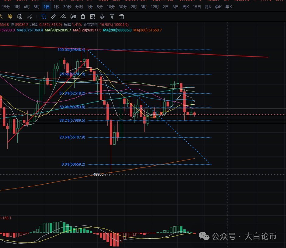 8.30大饼好不容易朝着61000前进后,突破失败,继续回59000