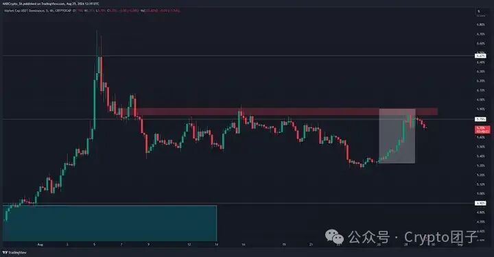当 USDT.D 上涨时,这意味着更多的投资者和市场参与者将他们的加密货币兑换为 Tether,这意味着缺乏信心和抛售压力激增。近期,这种势头有所减弱,主要山寨币和比特币的价格出现反弹。