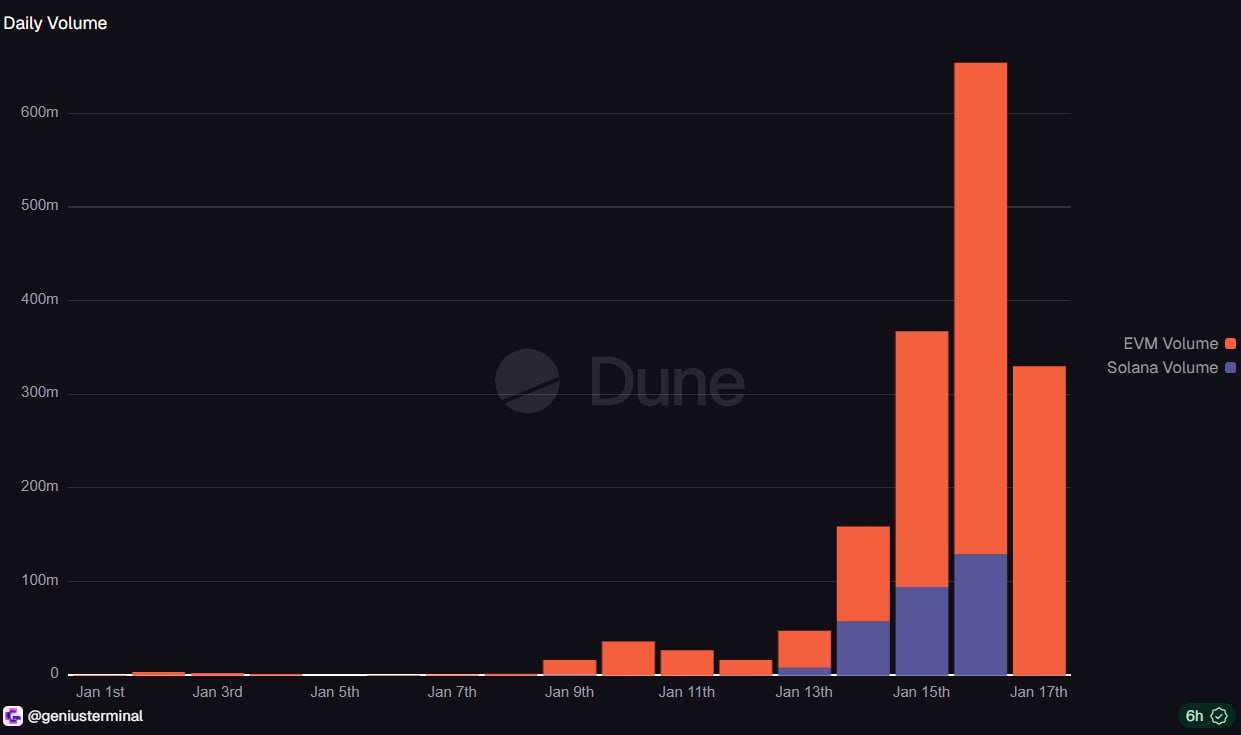 Genius Terminal 在 1 月 16 日单日交易量高达 6.5 亿美元,创下历史新高