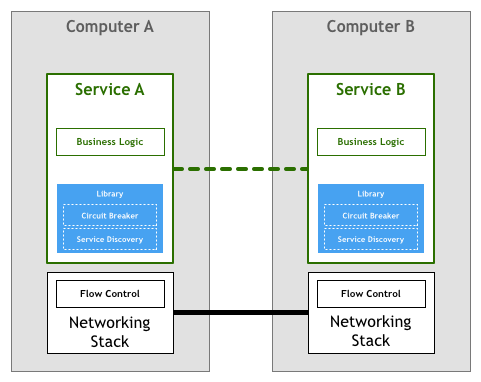历史往往会重演,第一批基于微服务构建的系统遵循了与前几代联网计算机类似的策略。这意味着落实上述需求的责任落在了编写服务的工程师身上。