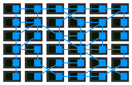 如图所示,A为农业小镇,B为金融小镇,C为矿业小镇,D为工厂小镇,蓝色椭圆代表业务节点,绿色椭圆代表邦联化的服务器,这四个小镇是互相联系的,使用分布式/邦联化的数据中心架构。