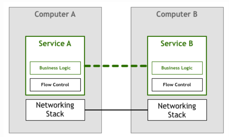 一段时间以来,大家寄希望于建立网络服务和应用程序的开发者能够通过编写代码来解决上面提出的挑战。在我们的这个流程控制示例中,应用程序本身必须包含某种逻辑来确保服务不会因为数据包而过载。在我们的抽象示意图中,它是这样的: